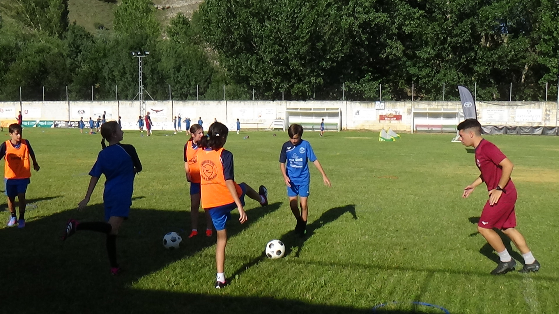 Tras el descenso pertinente, de la mano de SERGIO GONZÁLEZ se realizo el apartado de TECNIFICACIÓN DE PORTEROS y los demás compañeros y compañeras pasaron a unas actividades que gustan mucho como son los RONDOS, JUEGOS ADAPTADOS Y JUEGOS DE PROGRESION. Sin olvidarnos de los talleres para los mas pequeños, donde destacaremos la presencia de 5 niños y niñas de 4 años donde pudieron disfrutar de su primer campus.